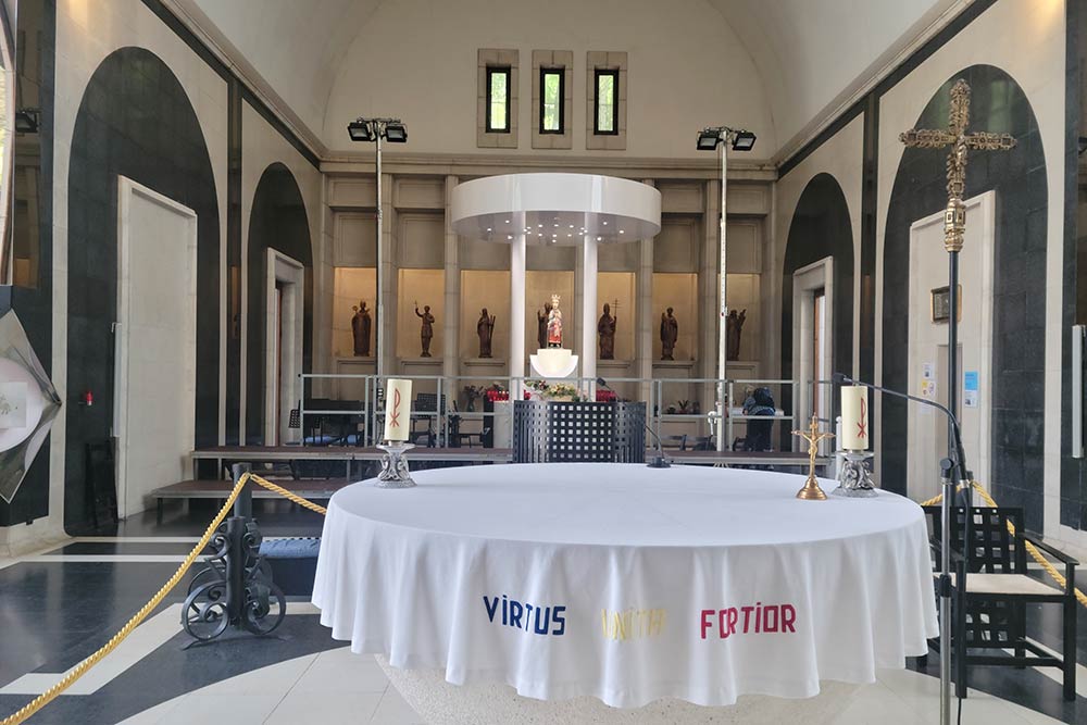Après la destruction de la chapelle romane abritant la statue de la Vierge à l’Enfant, la construction d’un nouveau sanctuaire a été décidée. Elle a été confiée à l’architecte catalan Ricardo Bofill. Trois piliers symboliques structurent son projet : foi, identité et culture. Quatre ans après l’incendie, le sanctuaire de Meritxell fut inauguré. Son plan est celui d’une croix grecque déformée. Ses proportions suivent le nombre d’or. Au centre de la nef, un autel marque le centre géographique de l’Andorre. Outre la statue de la Vierge, sept statues de saints*sont à admirer. Un cloître et un clocher-tour typiquement catalan viennent compléter le sanctuaire qui se fond merveilleusement dans le paysage. L’ardoise utilisé pour le parement extérieur rappelle la montagne. Quand aux lames de cuivres de sa couverture il s’agit du le feuillage. Enfin, le blanc de ses poutrelles ou plafonds fait penser à la neige.