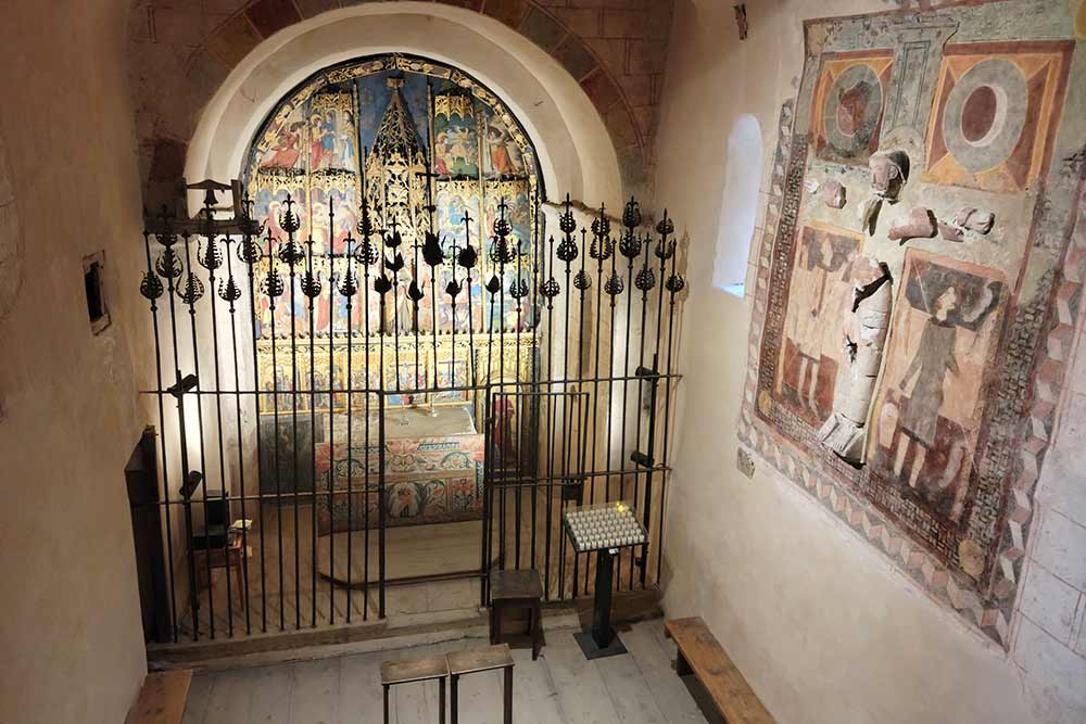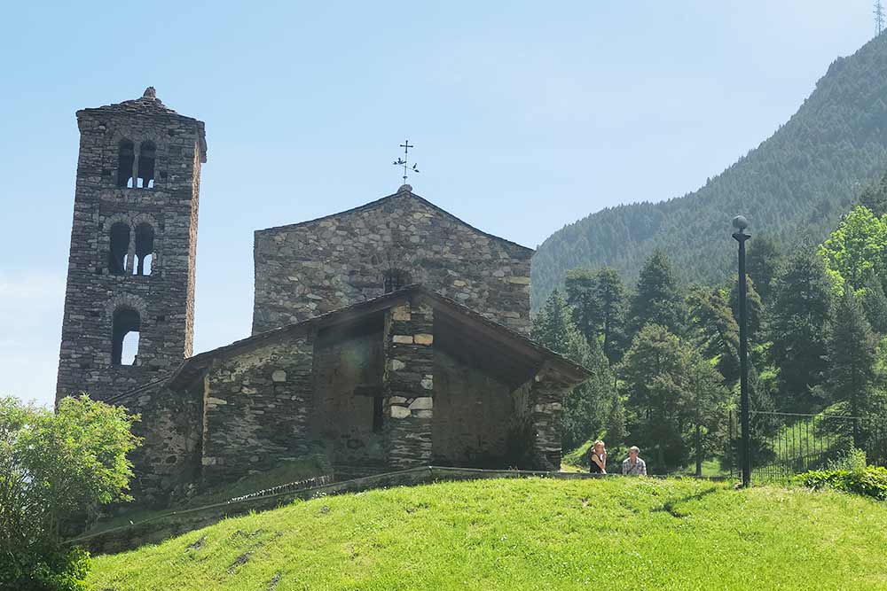 En Andorre, il y a une église qu’il est impossible de rater. Il s’agit de Sant Joan de Caselles, à la sortie de Canillo, sur la route menant à la France. Bien que coincée entre la route, la rivière et un parking, elle a conservé tout son charme. Edifié au XIe siècle, cette église romane est un pur joyau de pierres brutes dominé par un clocher carré. Elle aurait joué, en son temps, un rôle défensif. A l’intérieur, se trouve un Christ en majesté entouré d’archanges peints au XIIe siècle. Une fresque murale représente la Crucifixion avec saint Longin, qui a percé le flanc du Christ, et Stephaton, qui lui a donné à boire. Derrière une grille, un superbe retable datant de 1537 raconte l’histoire de saint Jean (à gauche) et l’Apocalypse (à droite). Face à l’autel, un étonnant banc en forme de U accueillait jadis le Conseil de Canillo.