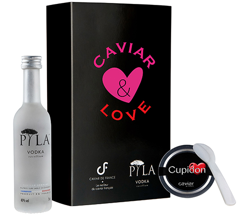 Pour célébrer la fête des amoureux, Caviar de France est fier de vous proposer son coffret Caviar & Love. La sensualité du Caviar Cupidon alliée à la vodka Pyla Excellium accompagnera avec panache un serment d’amour. Ces petits grains de folie sauront faire craquer tous les amoureux. Un coffret qui joue la carte de la séduction avec maestria. Que l’on ait 20 ans, 30 ans, 45 ans ou plus… se faire plaisir est important. Sans oublier qu’il n’y a pas d’âge pour être amoureux. Valentine ou Valentin… nous le sommes toute notre vie.