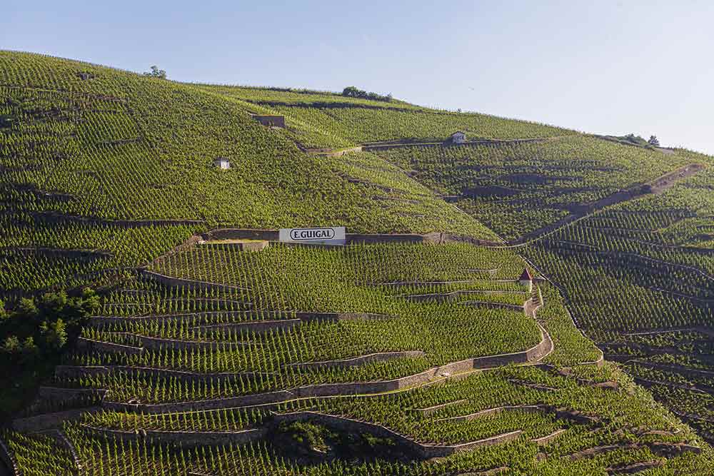 Cette terre abrupte a été façonnée par le Rhône, puis cultivée en terrasses depuis l’antiquité. La Maison Guigal la travaille avec passion et persévérance pour maintenir les grandes appellations de la Vallée du Rhône. Le Domaine est constitué de nombreux vignobles d’exception : Côte-Rôtie, Condrieu, Hermitage, Châteauneuf-du-Pape, Saint-Joseph, Crozes-Hermitage … Ces illustres parcelles ont donné naissance à des flacons prestigieux. Mieux, elles mettent en lumière l’excellence de cette cave. La préservation du vignoble et le respect de cette terre nourricière sont au cœur des exigences du Domaine Guigal. Façonner et entretenir les terrasses, tailler et prendre soin des vignes, une attention de chaque instant, sans artifice, une viticulture à l’écoute de la nature, raisonnée et bienveillante, à l’image des hommes qui la font et des vins qui en émergent.