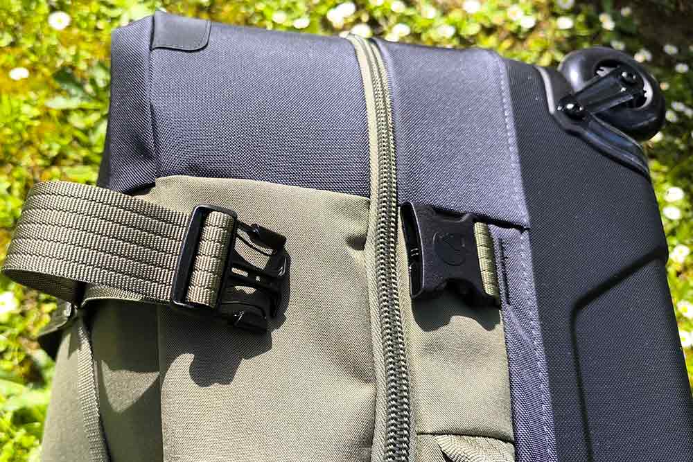 Avec ces différents compartiments, le contenu du sac Fjällraven Färden 75 roller ne ballotte pas. Effectivement, à l’extérieur, il est doté de deux larges sangles de compression. Ces dernière assurent au sac sa juste taille, en fonction du contenu. Dans le même temps, elles lui confèrent une touche élégante. De plus, il se manœuvre facilement.
