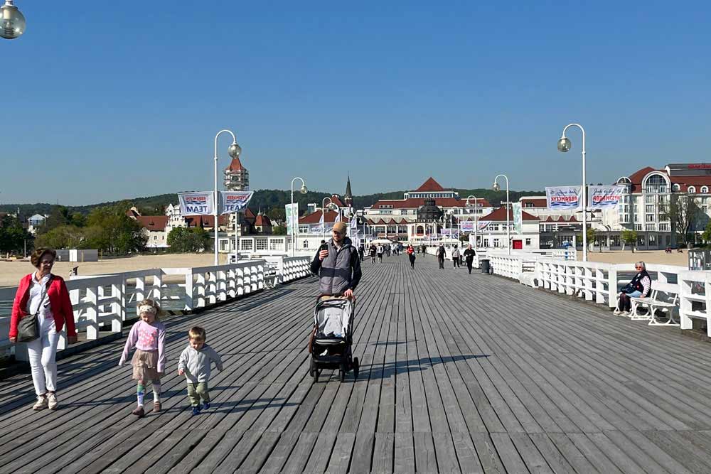 Pour poursuivre nos métaphores battantes et combattantes, voici Sopot, soeur cadette et pendant récréatif de Gdansk la brave et de Gdynia, toute proche d’elles, et pourtant si différente. Ce lieu de villégiature est très apprécié des polonais depuis la création de son Grand Hotel en 1927. Fréquenté par des personnalités aussi diverses que le général de Gaulle, Fidel Castro, Marlène Dietrich ou Joséphine Baker. En plus de sa lumière transparente et de son caractère légèrement désuet, on y remarque ses cafés, ses restaurants, ses activités culturelles. Son fameux môle, jetée en bois de 512 mètres donnant l’impression de voler sur les eaux et où tout est spectacle : familles et élégantes, yachts et petites voiles… De part et d’autre se trouve la plage. Vous pourrez aussi y risquer un petit plouf !