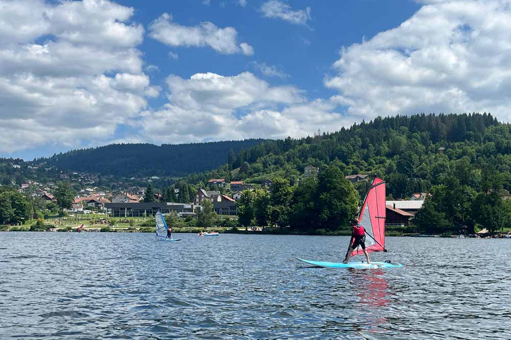 La planche à voile fait partie des nombreux sports nautiques pratiqués sur le lac (Gérardmer)