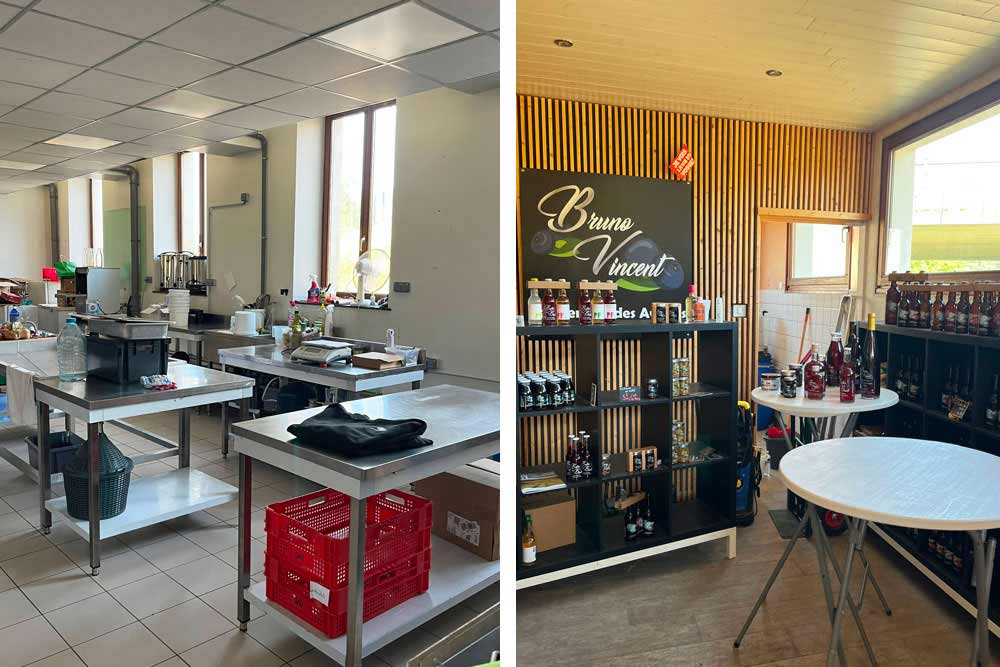 Comptoir du domaine Beaucerf. A droite, la récolte de l’arnica à la Ferme du Bien-être.