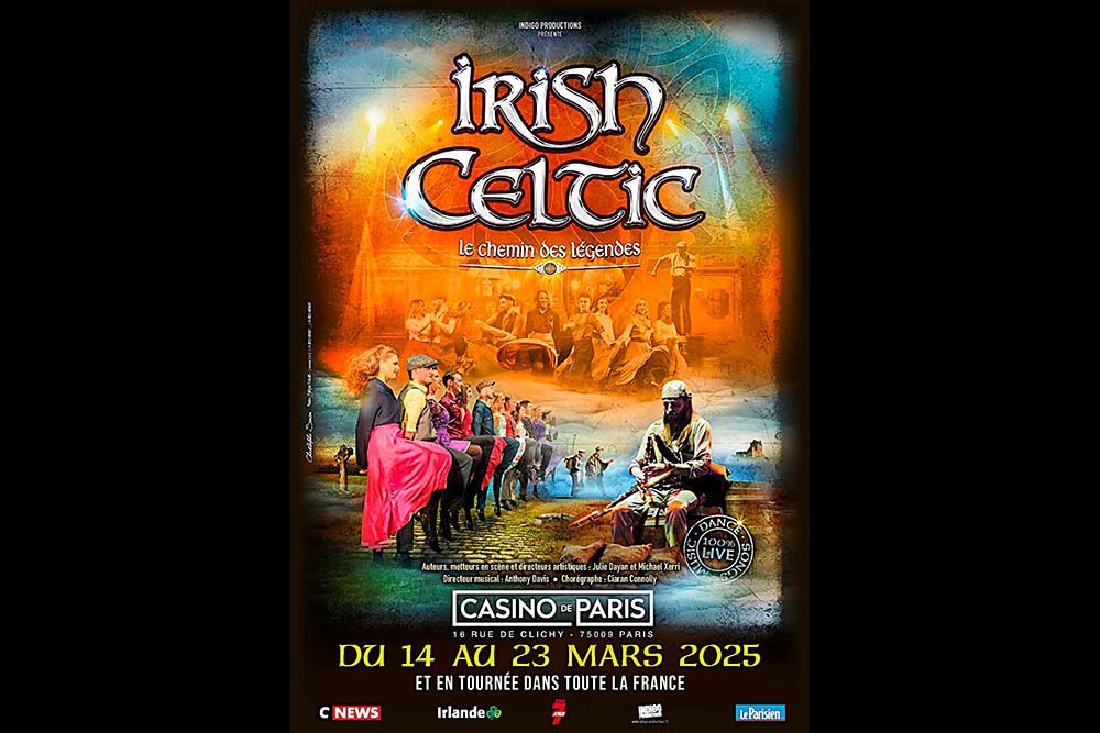 Si les USA possèdent leur mythique Route 66, synonyme d’évasion, de liberté et de découverte, l’Irlande a le super Chemin des Légendes. Pendant une heure quarante, la troupe du spectacle Irish Celtic va vous transporter dans un voyage inédit. Vous serez porté par des histoires intemporelles et intergénérationnelles, des danses irlandaises entraînantes ponctuées de claquettes explosives, et de musique celtique envoûtante en live… Un spectacle qui va vous donner envie d’aller en Irlande pour en découvrir plus sur ce fameux chemin et les danses celtiques.