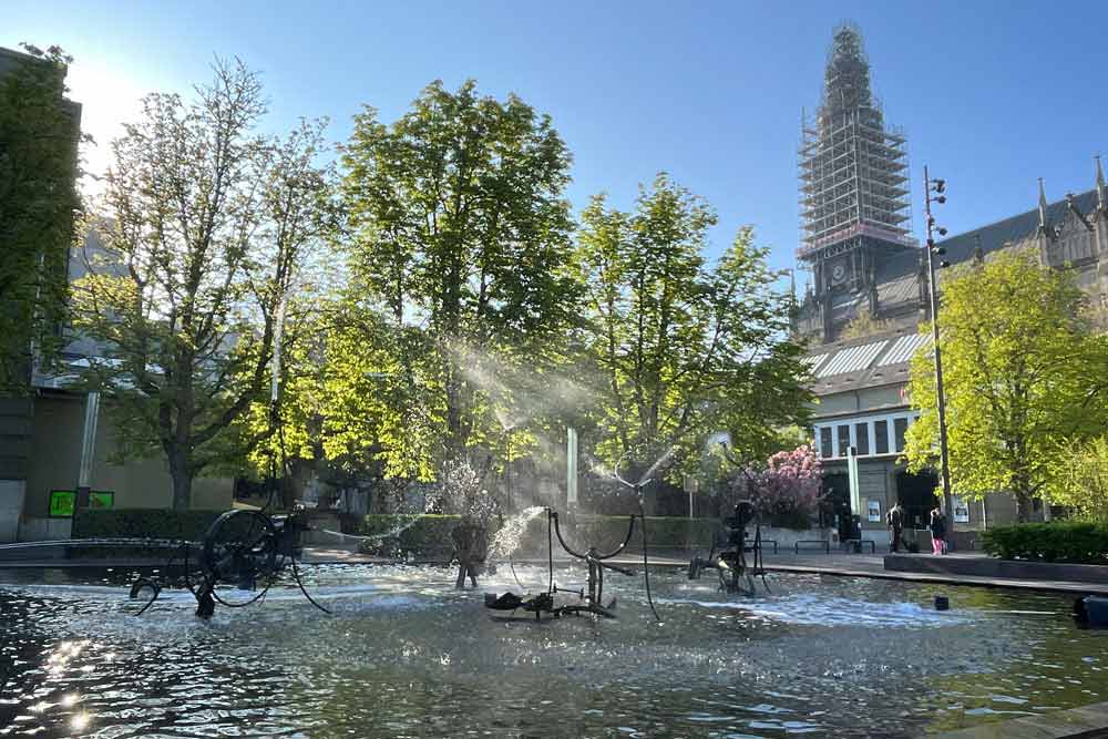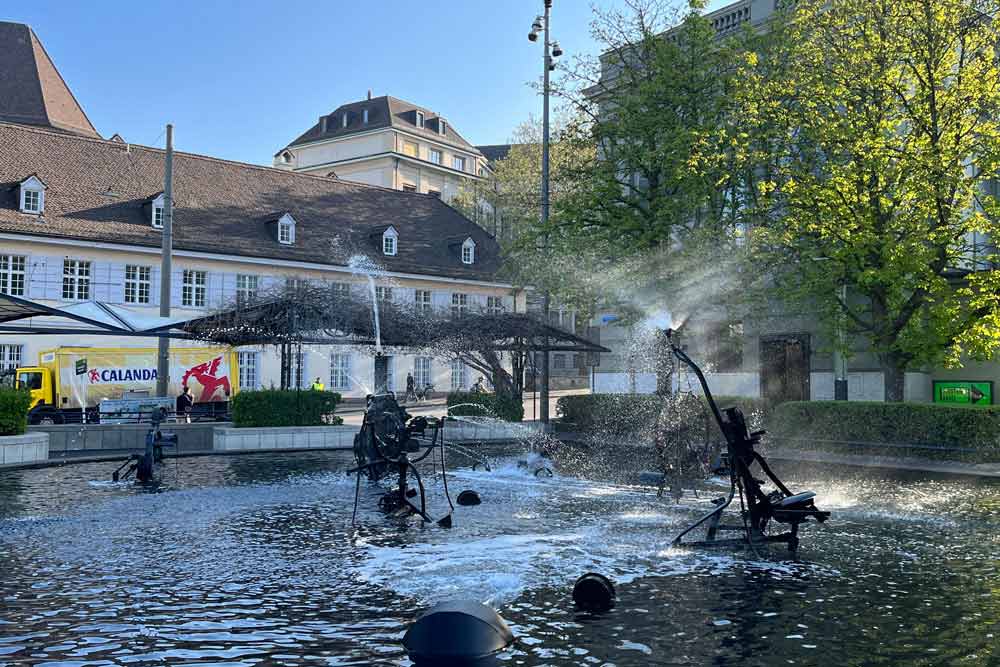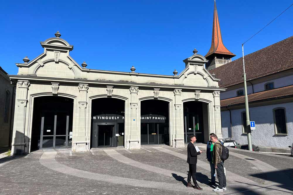 C’est une des très jolies façons de découvrir la ville dans les pas de Tinguely. Grâce à la sympathique Odile Hayoz, on en saura plus encore sur l’artiste avec un peu de fantaisie en prime. On passe ainsi de la place Jean Tinguely à l’esplanade Jo Siffert. Avec ici, une fontaine qui pschitte comme le champagne de la victoire. Et là, les ruines du garage de ce pilote de course, ami proche de Tinguely mort prématurément. Plus loin, on passe devant le grand magasin Manor où se trouvait l’enseigne Globus et ses vitrines à sensation. Un jour, Tinguely y exposa des fourrures sur des tas de gravas. La polémique fut telle qu’il fallut disperser la foule !