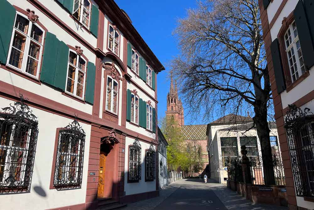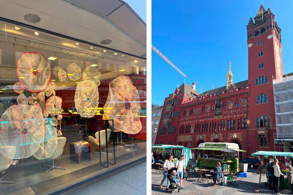 Cette magnifique partie de la ville nous dévoile tour à tour ses vieilles pierres. De la cathédrale en grès rose aux maisons cossues telle celle d’Erasme du XVIe siècle. On passera tour à tour place des Pieds nus. Et rue de l’Arbuste où se trouvaient deux galeries qui ont fait connaitre l’artiste (notamment celle d’Ernst Beyeler). Le magasin Ramstein Optic et la splendide place du Marché où se trouvait le grand magasin Globus nous rappellent ensuite que Tinguely, à ses débuts, fut étalagiste. Métier auquel il dut renoncer à cause de ses prises de liberté excessives. L’artiste, profondément rebelle disait « Je préfère être mendiant que d’arriver à l’heure et suivre certaines règles » !