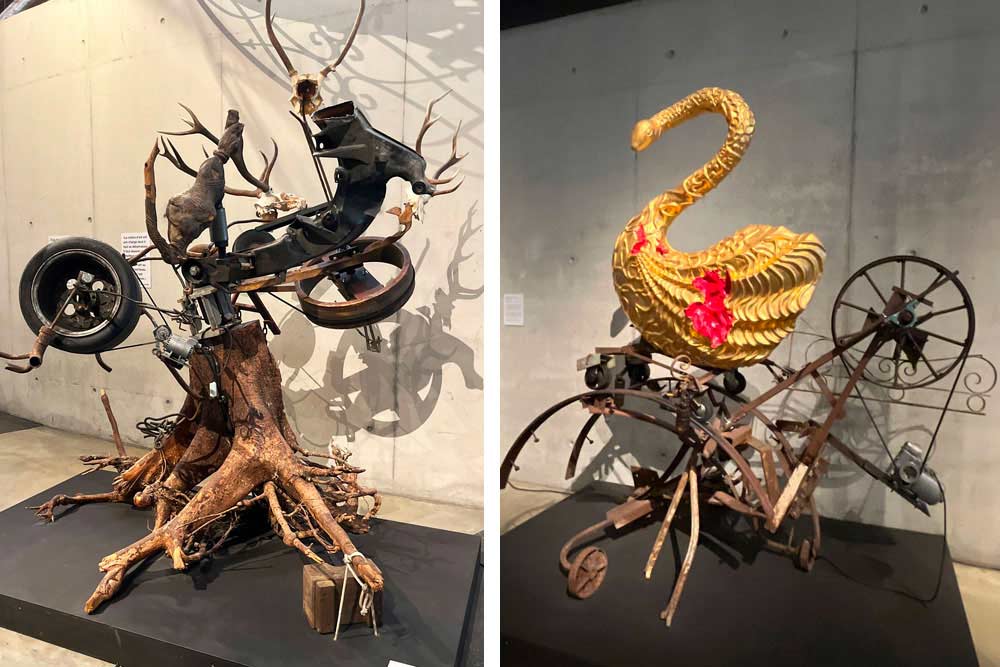 Dans ce musée incontournable de Fribourg, on découvre le Retable des petites bêtes, avec sa couronne, son soc de charrue et ses crânes d’animaux. Une oeuvre emblématique de ce « ténébrisme ludique » dont fait montre Tinguely à partir des années 80. La mort de sa mère, l’incendie d’une ferme voisine et ses animaux, ainsi que des soucis de santé personnels (une opération à coeur ouvert) provoquèrent chez lui une prise de conscience de sa finitude, de plus en plus présente dans ses oeuvres.