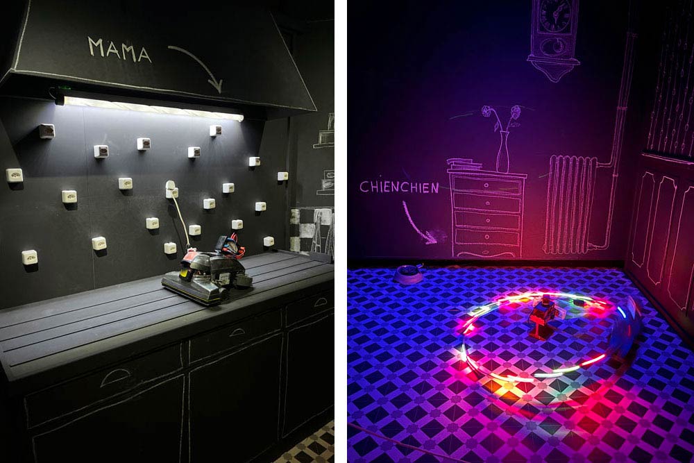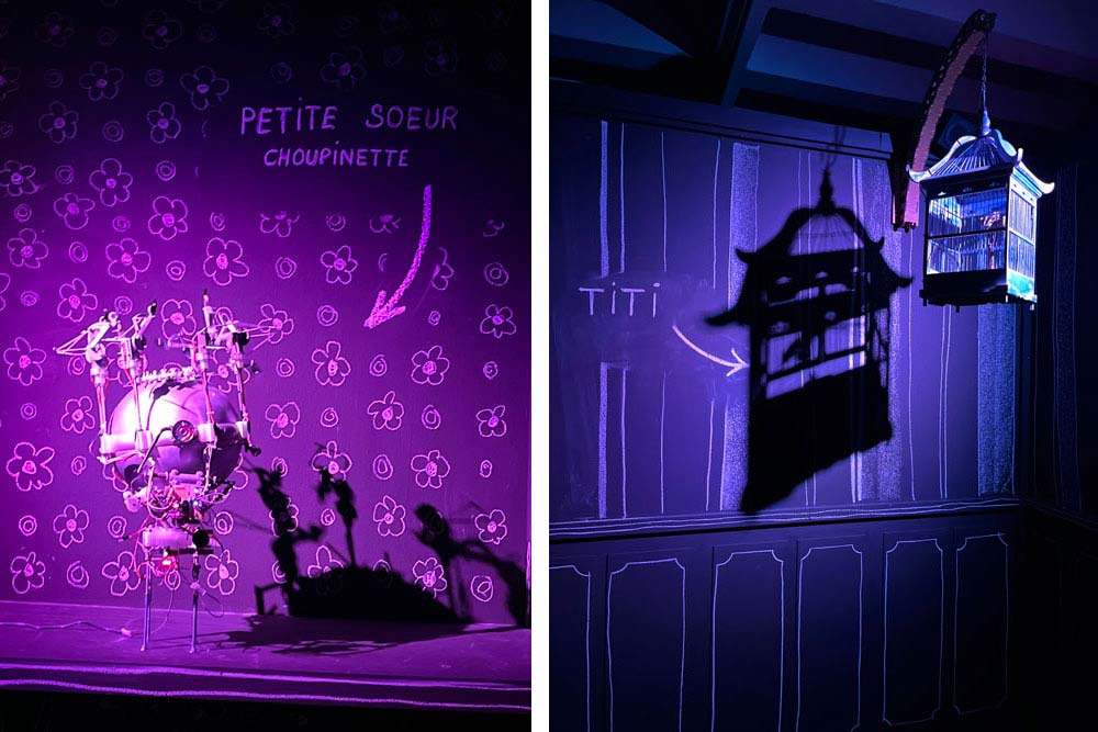 A découvrir aussi la très originale Bande Mécanique, oeuvre-parcours réalisée par le collectif du Magnifique Théâtre, dans l’esprit de Jean Tinguely. Quinze petites machines, sortes de robots improbables symbolisant les membres d’une famille dysfonctionnelle, se meuvent tour à tour dans l’obscurité. La mère et ses fourneaux. Le père chômeur et sa tondeuse. La tante sans enfant et ses bonbons. La petite fille avec son monstre sous le lit. Jusqu’au chienchien tournant en rond et au poisson rouge rêvant d’amour et d’eau fraiche… Une farce très réussie, hilarante et grinçante, qui provoque beaucoup d’émotion. On adore !