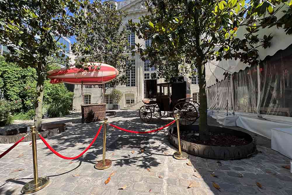 Grand Hôtel des Rêves, la cour avec des décorations liées à Jules Verne.