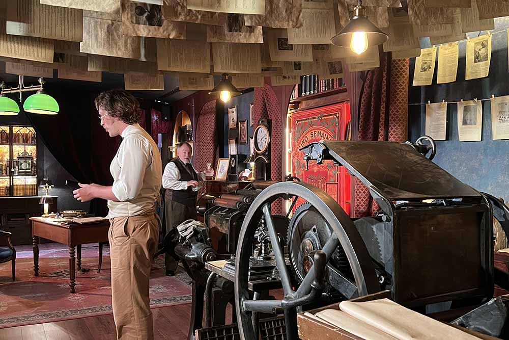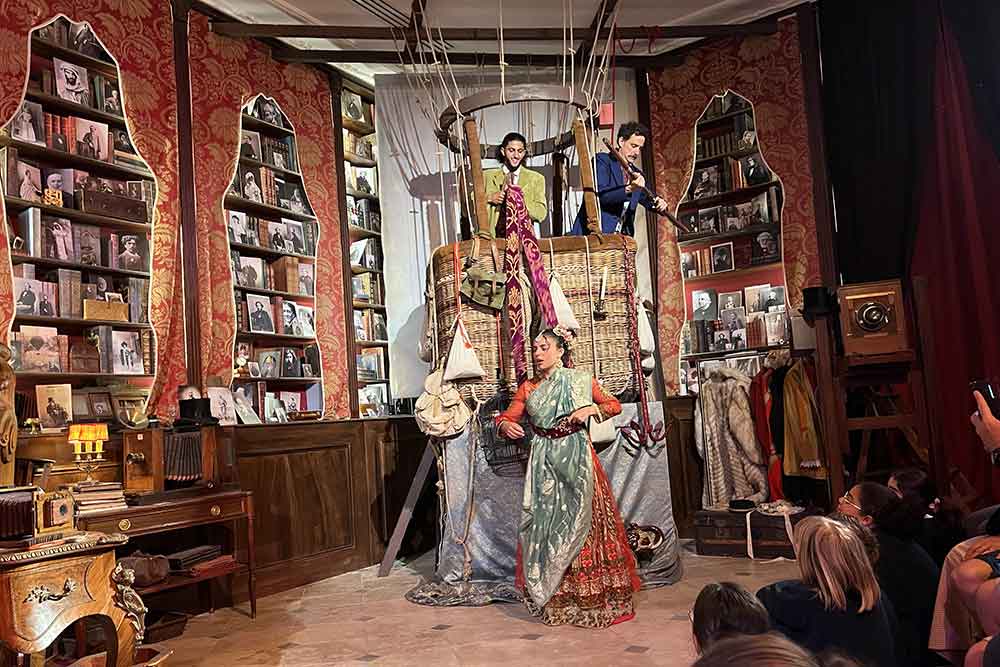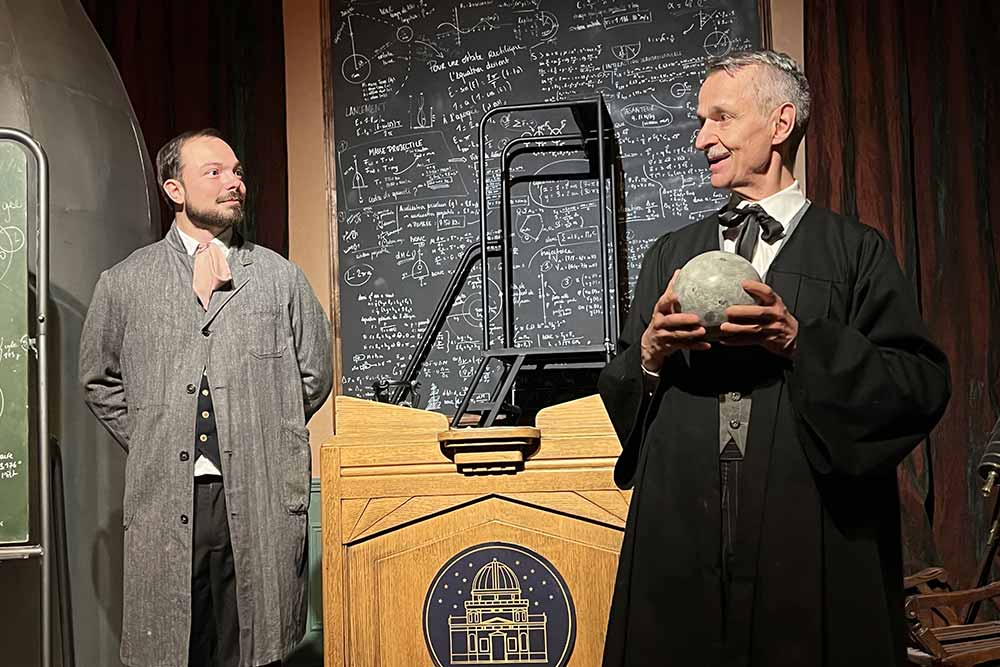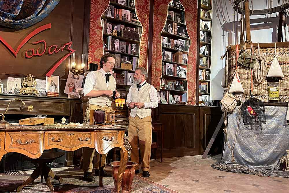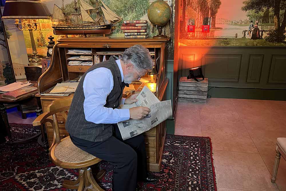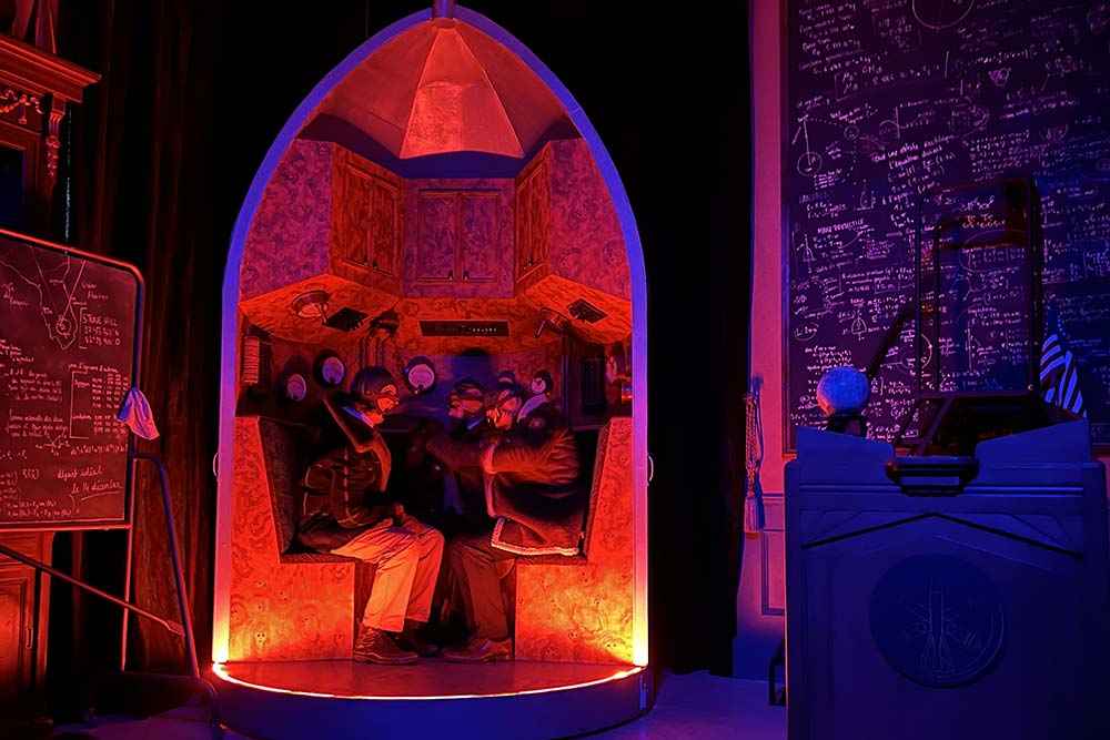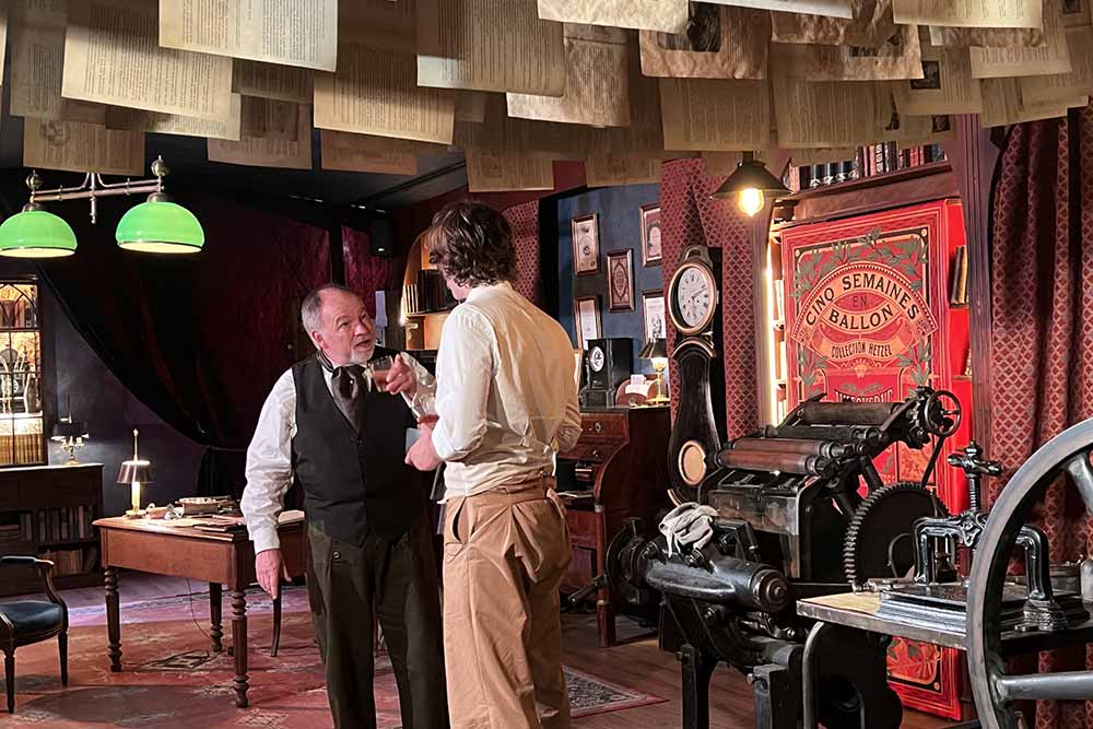 Au travers de huit tableaux, vous découvrirez vingt quatre personnages qui ont fait partie de la vie de Jules Verne. Les acteurs incarnent ces personnages avec brio et réalisme. Ils nous guident tout au long du parcours comme si nous faisions partie du jeu. Passages secrets, effets spéciaux et jeux de lumière renforcent l’illusion pour notre plus grand plaisir. Une scénographie digne des plateaux de cinéma nous plonge dans l’univers imaginaire et magique de Jules Verne. Ce spectacle immersif relève de l’exploit. Bravo aux équipes de Polaris qui ont oeuvré sous la direction artistique de Charles Mollet, secondé par la cheffe décoratrice Albane Simon-Duneau et le garant technique Geoffroy Giscard d’Estaing. Les décors et les costumes sont fabuleux. On se croirait vraiment à l’époque de Jules Verne.