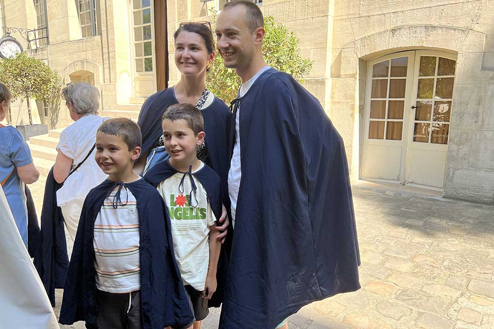 Les visiteurs sont accueillis par un charmant jeune homme.
