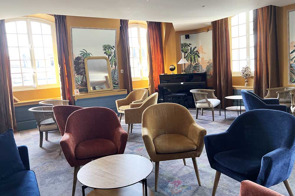Au dernier étage, un salon pour vous poser et boire un verre.