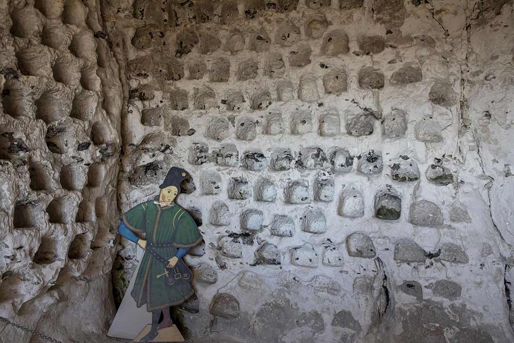 Dans la falaise était également creusé un pigeonnier que l’on pouvait rejoindre par le chemin couvert.