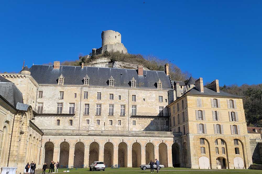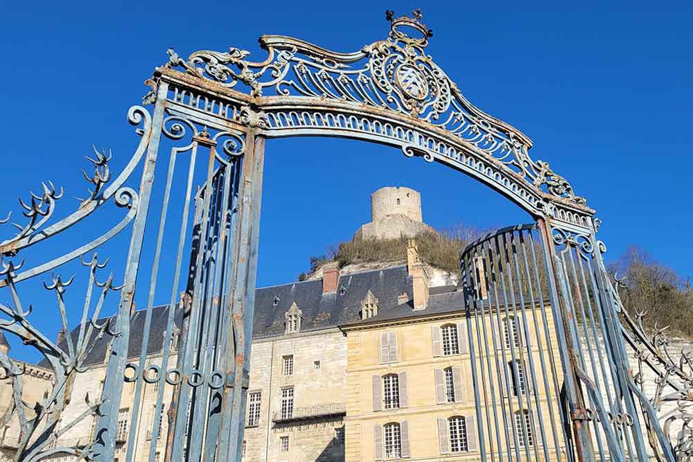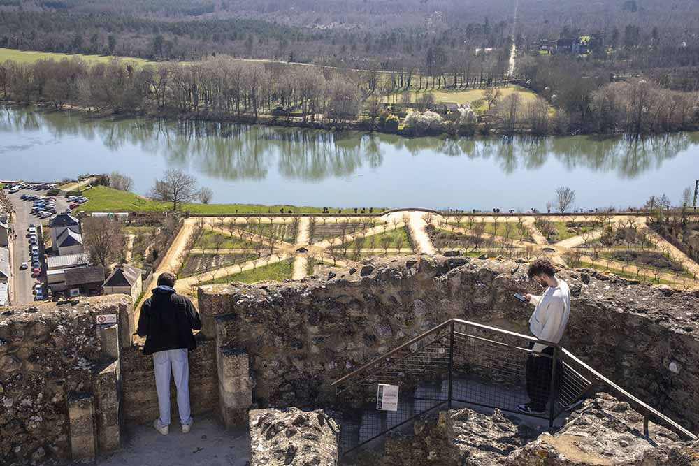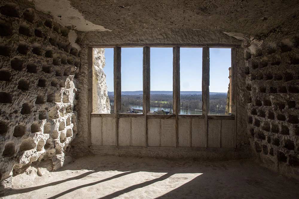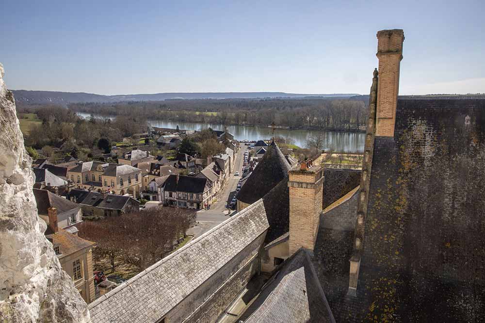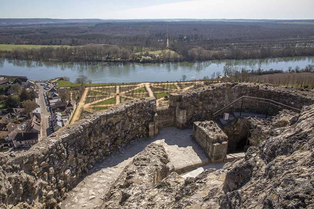 C’est dire si la menace était prise au sérieux par les souverains capétiens. D’où l’édification d’une tour de surveillance de 60 mètres de haut au sommet de la falaise au tournant des années 1100. Construit sous le règne de Charles le Chauve, le donjon se composait d’une tour à éperon au nord. Elle était protégée par une double enceinte et un château troglodyte évoqué par l’abbé Suger, conseiller des rois Louis VI et Louis VII. Pour prévenir le donjon de toute attaque sur son côté le moins protégé, un gigantesque fossé avait aussi été découpé dans la falaise. On peut encore en deviner la trace. Le but de cet ensemble consistait à se protéger des attaques normandes puis anglaises. En remontant la Seine, elles semaient la terreur. Dans le camp adverse, un édifice militaire, le château Gaillard, protégeait la Normandie des, désormais, Français.