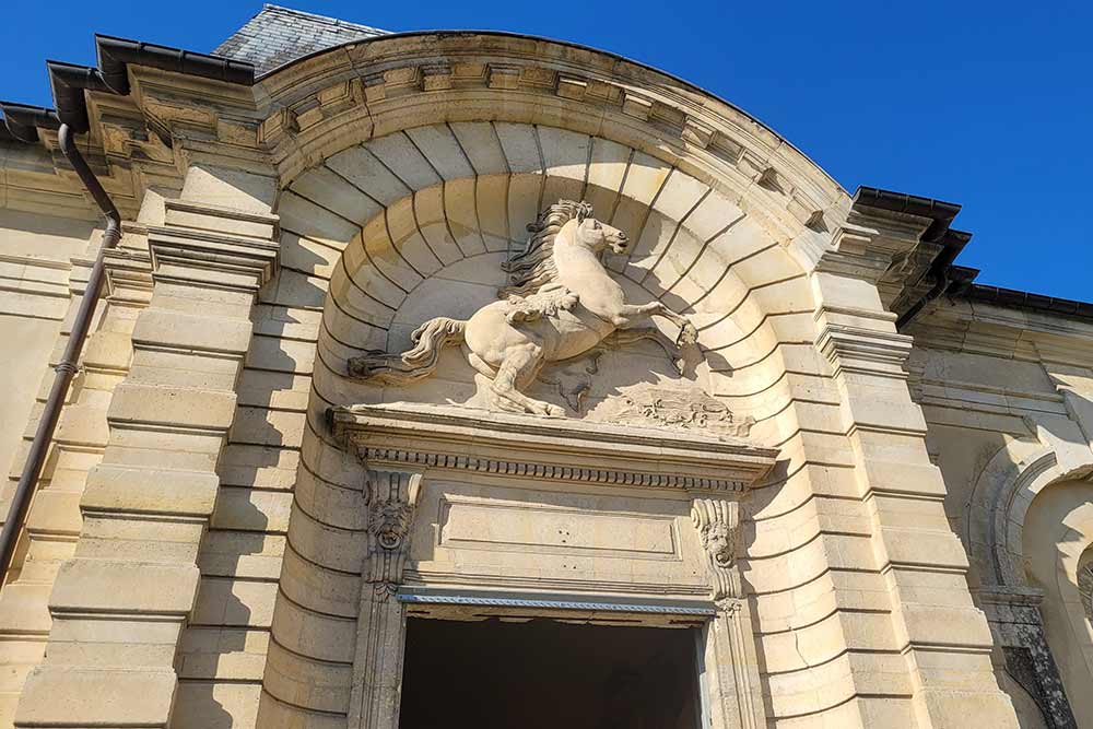 Un cheval cabré, œuvre du sculpteur Jamay orne l’entrée des écuries©Frédéric Cheutin