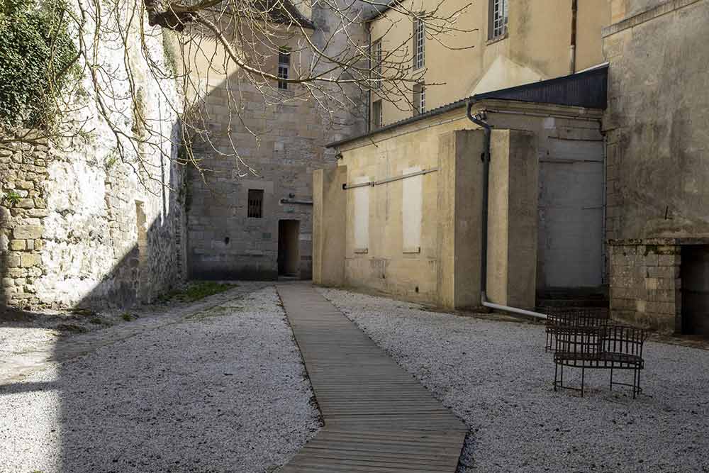 La cour des écuries est bordée par d’immenses arcades soutenant une vaste terrasse qui servaient aussi de remises. À leur clé, des plaques de tôle indiquaient le numéro qui permettait au duc de commander sa voiture et son équipage. Côté Seine, les anciens murs d’enceinte ont été abattus pour laisser place à des fossés secs. Ce qui offre une vue sur le jardin d’expérimentation situé en contrebas. Enfin, la cour est fermée par une grille, chef-d’œuvre de la ferronnerie locale surmontée des armes et de la couronne ducale des La Rochefoucauld.