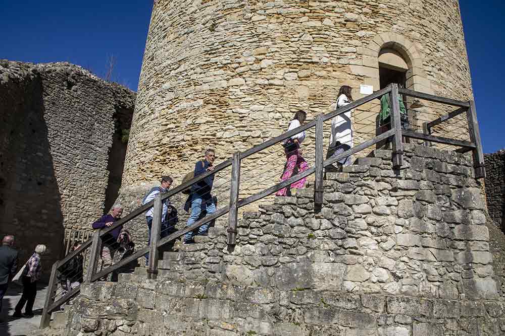 Finalement, ce sont les Français qui amputeront le donjon, devenu tour d’habitation au XIVe siècle. Lors de la Révolution de 1789, il sera amputé d’un tiers de sa hauteur par les habitants de la région. Un moindre mal accompli volontairement pour deux raisons : l’affection qu’ils portaient à la famille noble vivant dans le château et la difficulté à transporter les pierres descellées. Aujourd’hui, le donjon se visite et offre une vue sans pareille sur la région. Pour le rejoindre, il faut emprunter un escalier d’une centaine de marches creusées dans la falaise. Un exercice physique certain. Pour cette raison, n’hésitez pas à faire une pause pour admirer le gigantesque pigeonnier également creusé dans la falaise que l’on rejoint par ce même escalier.
