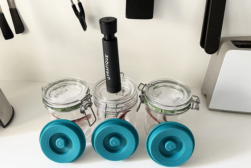 Le kit de mise sous vide pour bocaux à armature Le Pratique X AIRTENDER comprend :