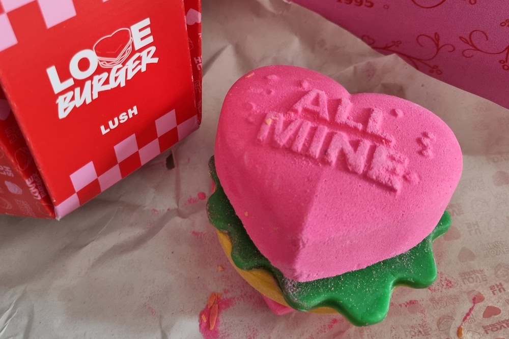 Enfin, Lush a conçu le Love Burger, un burger vegan 3 en 1 en forme de cœur ! La recette secrète pour le meilleur bain de Saint-Valentin : deux savons « tomate » et « salade » parfumés à la bergamote sur lit de Pain moussant au citron de Sicile, nichés entre deux bombes de bain en forme de cœur parfumées à la cerise, le tout dans un emballage entièrement recyclable.