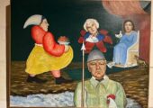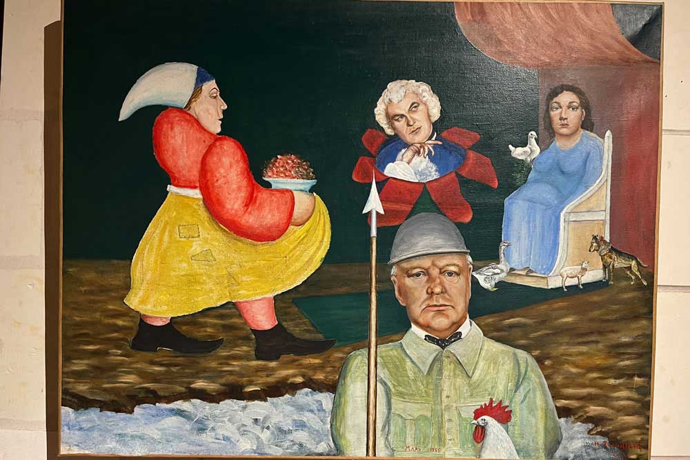 Winston Churchill en dieu Mars par Henri Trouillard (1955), un tableau du musée d’Art Naïf et d’Arts Singuliers à Laval