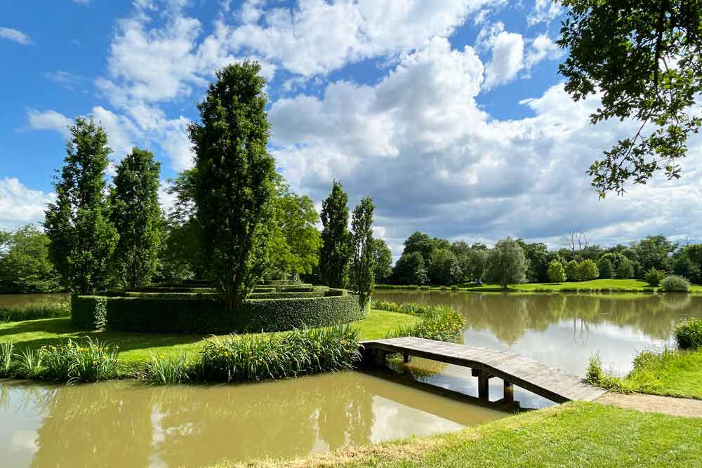 Le plan d’eau créé de toutes pièces par Jean Renault (Jardins des Renaudies).