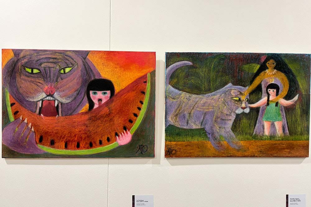 De gauche à droite. La Pastèque et Dorothy Lamour et le tigre Meewa, par Alicia Dujovné Ortiz.