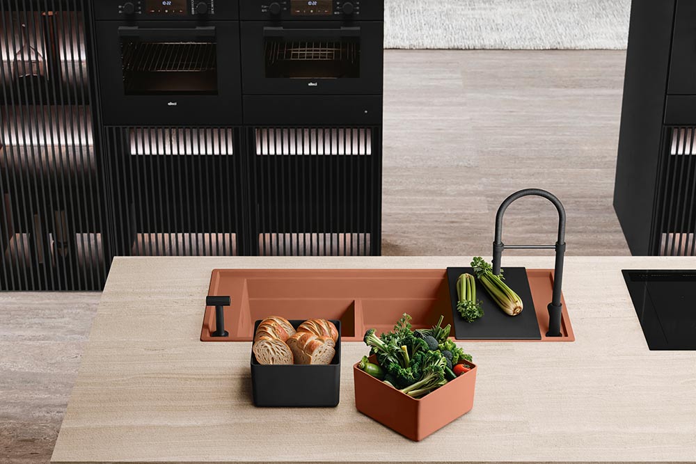 Intéressant, les accessoires conçus et organisés en deux kits : « Chef » et « Barman » qui répondent aux besoins de chaque utilisateur. En effet, chacun trouvera les outils dont il a besoin pour cuisiner ou préparer un cocktail. Les accessoires dédiés à Mixology comprennent une sélection complète de planches à découper, de vasques et de passoires. Tous ces ustensiles sont disponibles en plusieurs tailles. Ce qui permet de les positionner à l’intérieur et à l’extérieur du poste de travail. Un ensemble pratique de petits récipients en silicone, d’une grande souplesse d’utilisation, est également proposé. Ils sont disponibles dans des couleurs très tendance telles que le noir, l’argile et la sauge. Ce qui permet de placer les ingrédients sur le poste de travail avec précision et style.