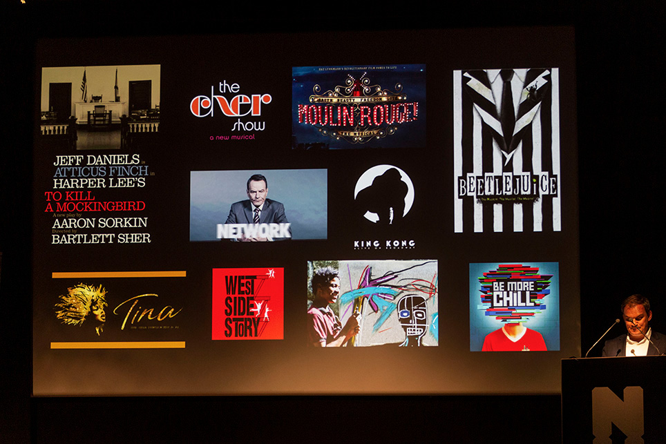 De très belles affiches à Broadway cette année, présentées par Christopher Heywood, vice-président de la communication internationale de NYC & Compagny. © Caroline Paux