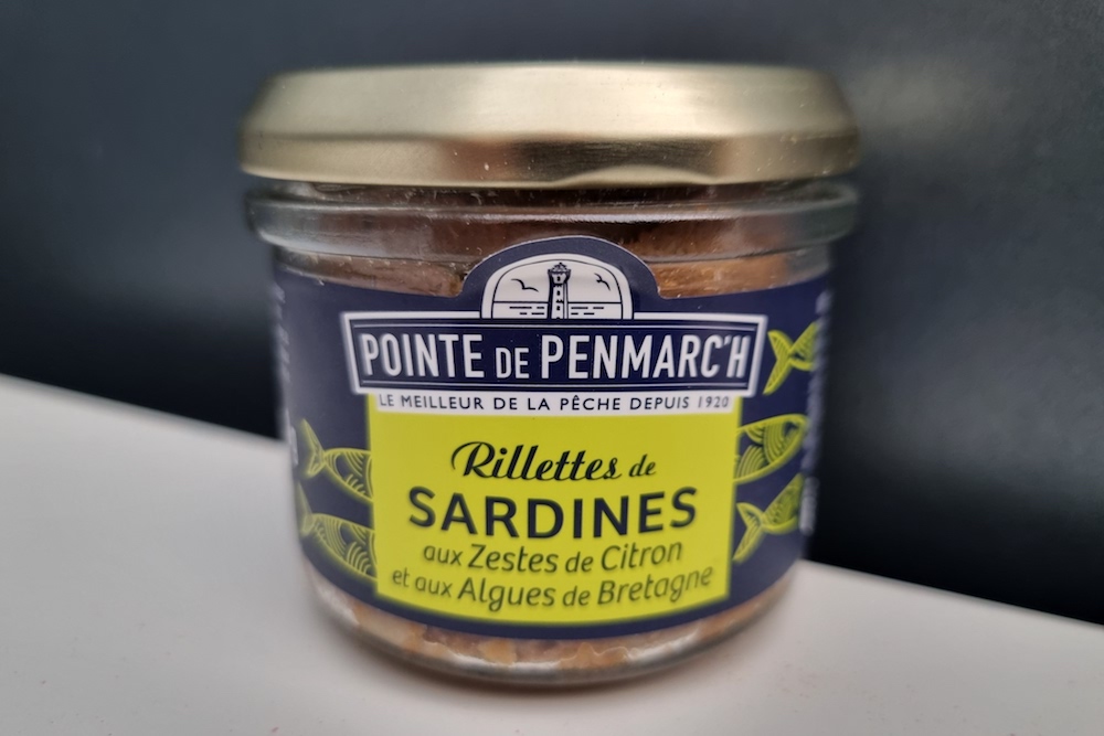 Rillettes de sardines aux zestes de citron et algues de Bretagne (90 g), Pointe de Penmarc’h, 4,40 euros.