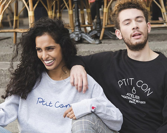 Plusieurs années après, Thibault, qui a travaillé dans l’industrie du vêtement et de la mode, réfléchit à un concept et un nom pour créer son entreprise. “Ptit Con” lui vient naturellement à l’esprit en pensant à sa mère… « Et si j’osais… ? » se dit-il… Et il ose… Il dépose la marque, on ne sait jamais, mais laisse mûrir l’idée quelques années avant de se lancer vraiment dans l’aventure. Riche d’un DES publicité, entrepreneuriat, gestion d’événements et relations internationales, son projet est maintenant bien ficelé. Il veut créer une marque de vêtements urbaine, typiquement française, avec des accessoires. Pour faire écho au nom qu’il a choisi, il parie sur l’irrévérence et l’insouciance. Des t-shirts, des sweats, des chaussettes affichent sans gêne un beau doigt d’honneur, signé “Ptit Con”.