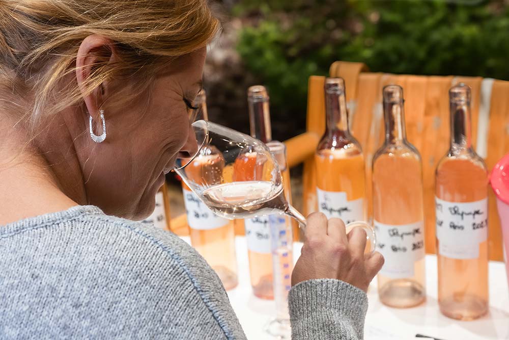 Provençale jusqu’au bout des ongles, Aurélie est la créatrice de ces cuvées. Elles sont le fruit de son expérience de seize années au service du vin de Provence. Cette vinicultrice arpente le vignoble et suit quatorze vignerons partenaires. Elle les conseille sur la culture de leur vignoble, suit les vendanges et achète les raisins ou les moûts selon sa sensibilité. Elle construit ses assemblages avec un