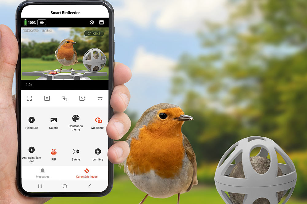 Cette mangeoire connectée est alimentée par le soleil. Elle capture la magie fugace des visiteurs à plumes et la partage en direct sur votre smartphone. Dans ce petit refuge, la nature et la technologie font cause commune au service des amoureux du vivant. Mésange, rouge-gorge, moineau, merle et autres espèces d’oiseaux se posent pour se restaurer. Et, tout devient spectacle. Si vous aimez observer sans déranger, écouter sans interrompre, vous allez adopter le Smart Birdfeeder.